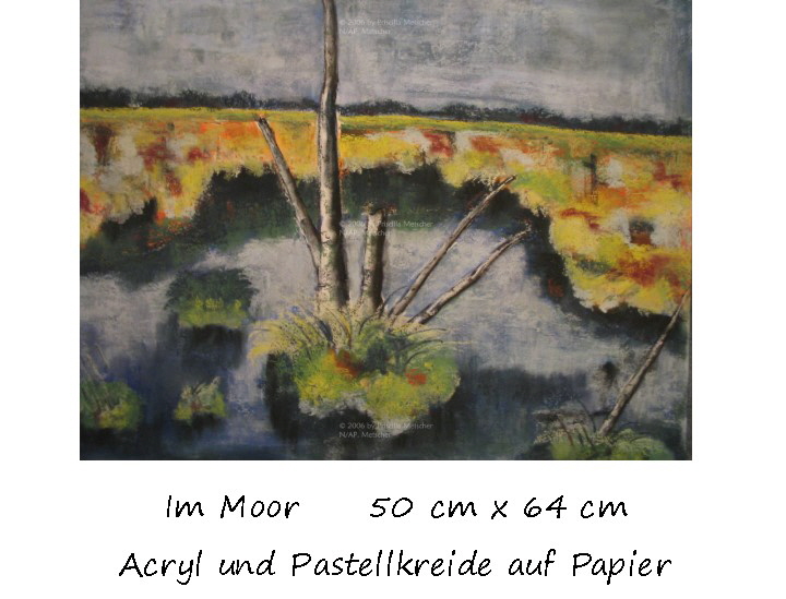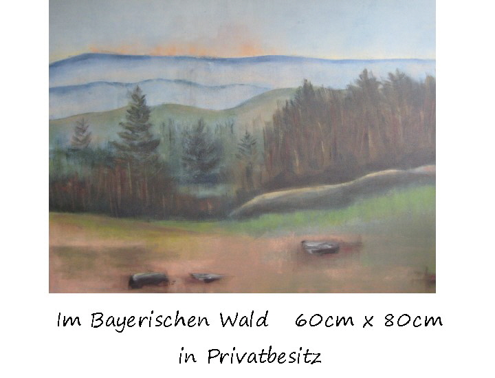 Schwerpunkte der Landschaften bilden neben meiner Heimatinsel Irland hauptsächlich Eindrücke aus den Wiesen und Mooren Fischerhudes und insbesondere dem Bayerischen Wald, meinem jetzigen Zuhause.
